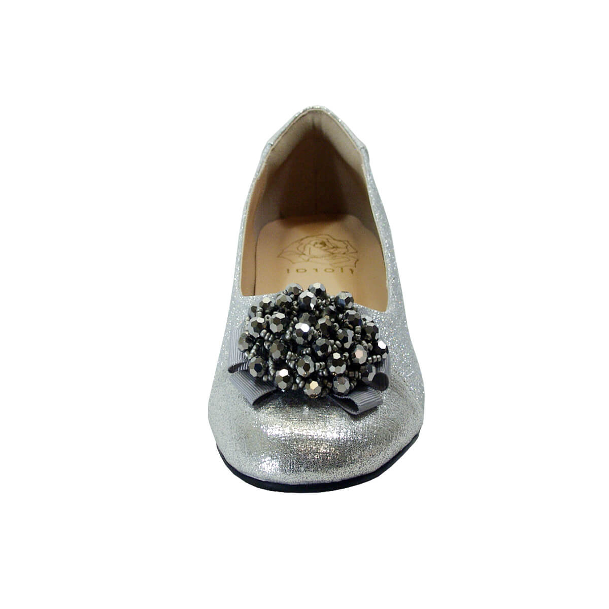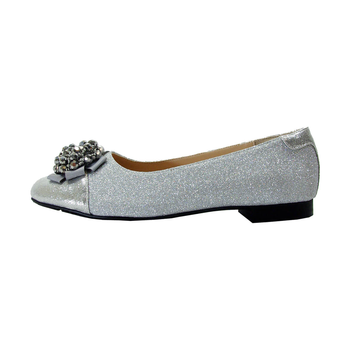 These Fuzzy Caroline flats provide extra wide width for an accommodating fit that is comfortable and stylish. The metallic upper is beautifully decorated with a beaded bow, while the rubber sole provides reliable grip and traction. The round toe and slip-on closure make them ideal for easy on and off.