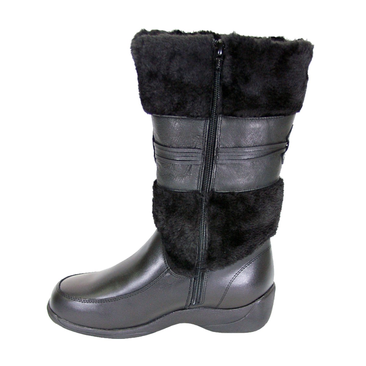 PEERAGE Bianca women’s extra wide width leather 12″ shaft height dress boots. This ladies 2″ heel mid-calf boot features an inner fleece lining, side zipper closure, outer fleece collar line with decorative tassel, and a maximum traction outsole that is sure to become your go-to boot this winter.