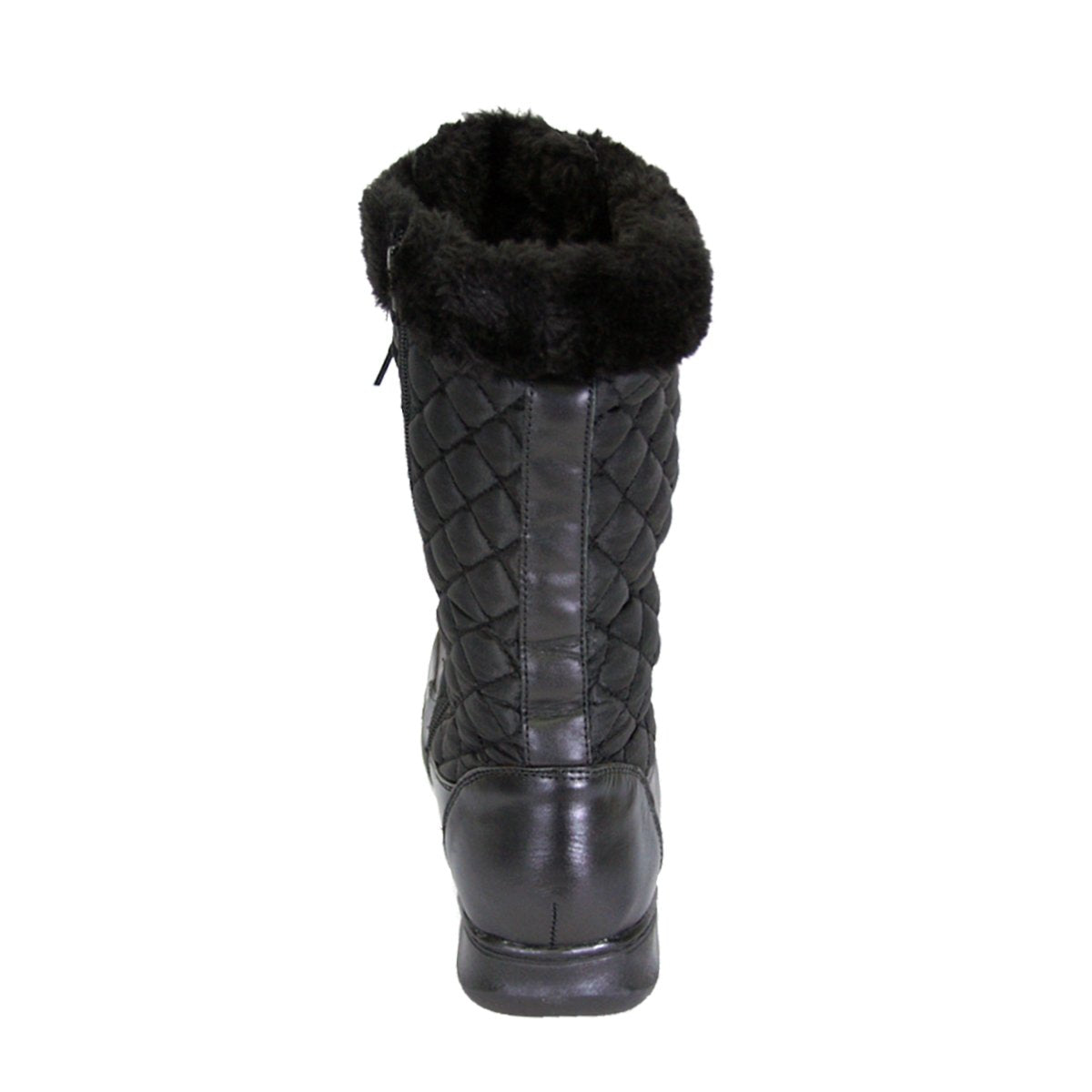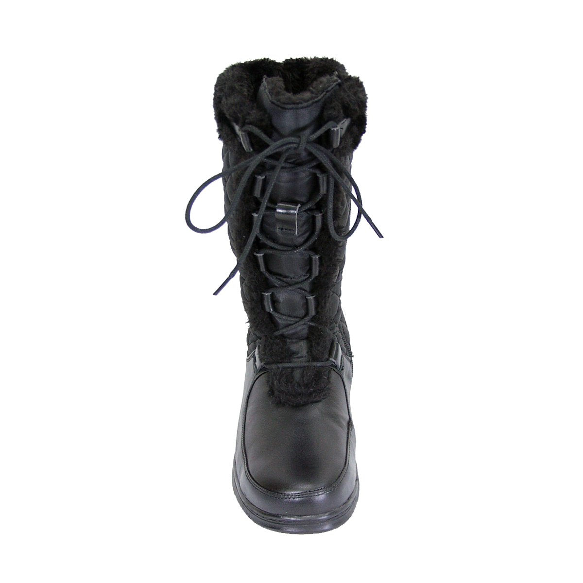PEERAGE Gabby women’s extra wide width leather/nylon mesh 11″ shaft height boots for those cold winter days. This ladies 1″ low heel mid-calf boot features a water-resistant nylon mesh shaft, front lace adjustable calf, inner fleece lining, side zipper closure, and a maximum traction outsole creating the perfect combination of warmth, style, and comfort.