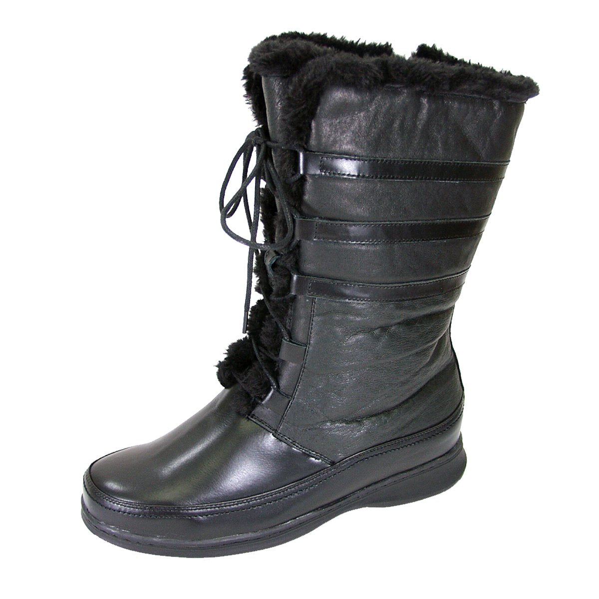 PEERAGE Mira women’s extra wide width leather dress boot will become your go-to choice this winter. This ladies 1.5″ low heel classic knee-high riding boot features an inner fleece lining, side zipper closure, and a maximum traction rubber outsole giving you warmth without sacrificing style.